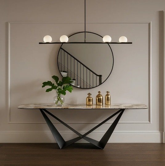 A striking contemporary console that blends modern geometry with timeless luxury.