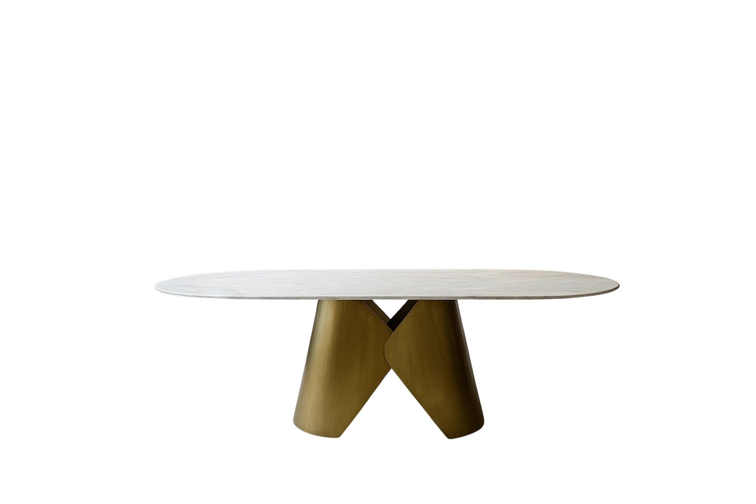 A luxurious dining table combining a premium Italian porcelain top with an elegant cylindrical stainless-steel base in gold finish.
