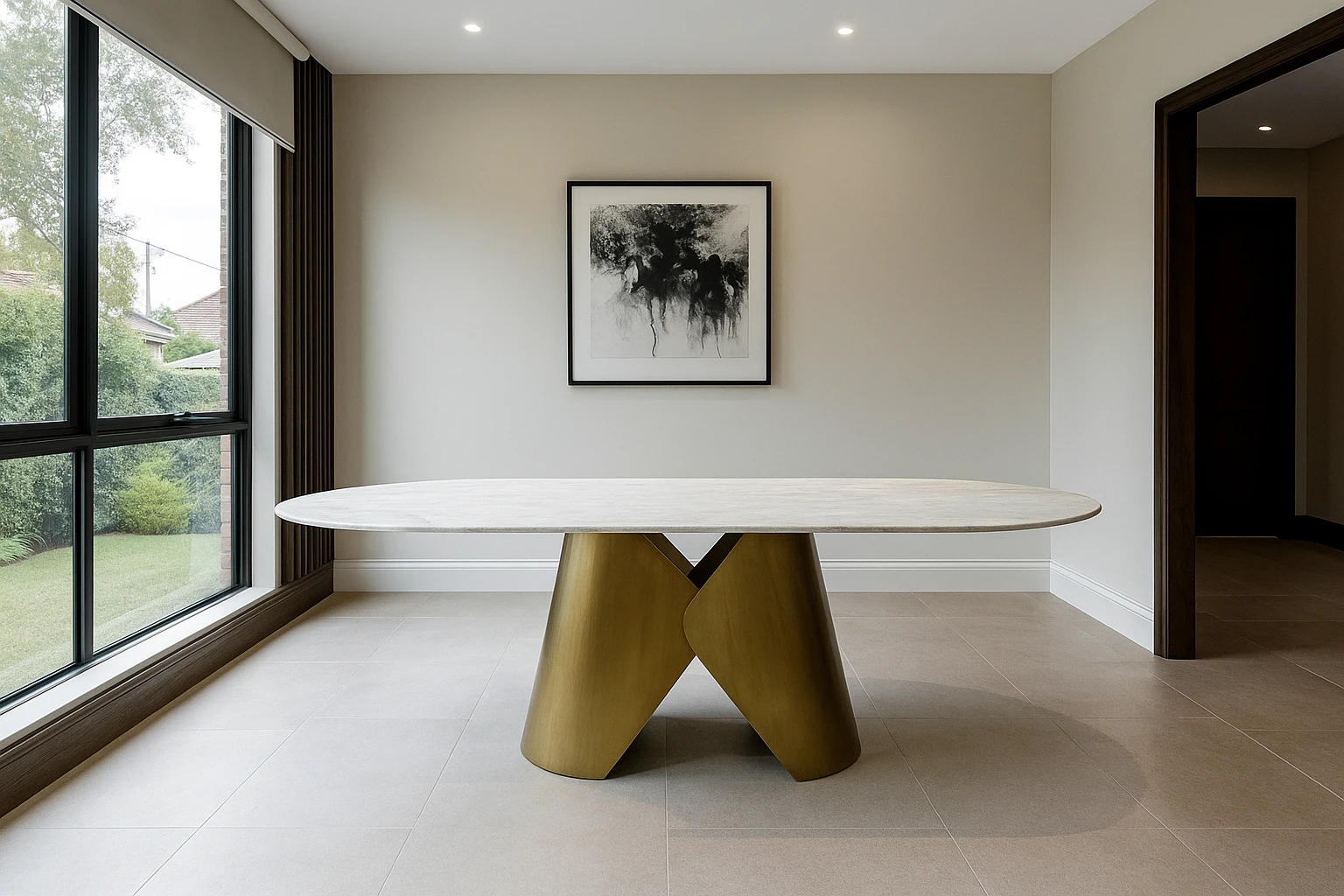 Harmony Dining Table – Porcelain Top with Stainless Steel Base