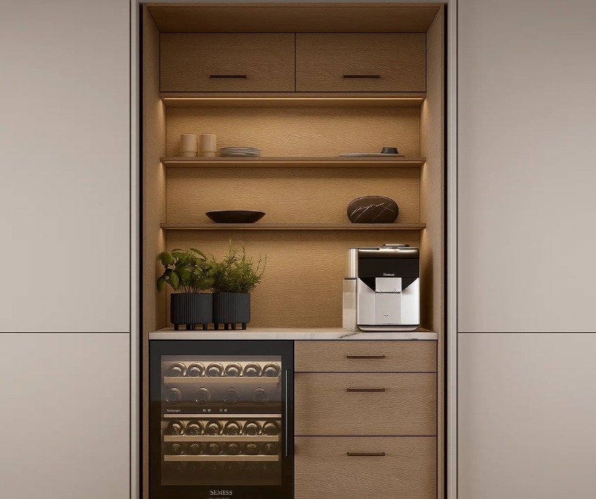 Luxury Built-in Coffee Unit Wood & Porcelain Design