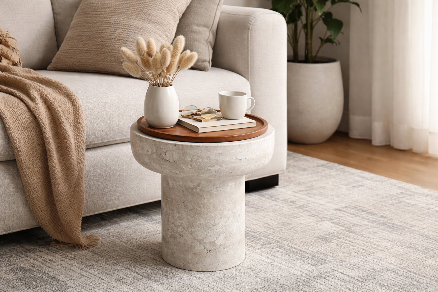 This elegant combination of stone and wood brings warmth and sophistication, making it perfect for living rooms, bedrooms, or hallways.