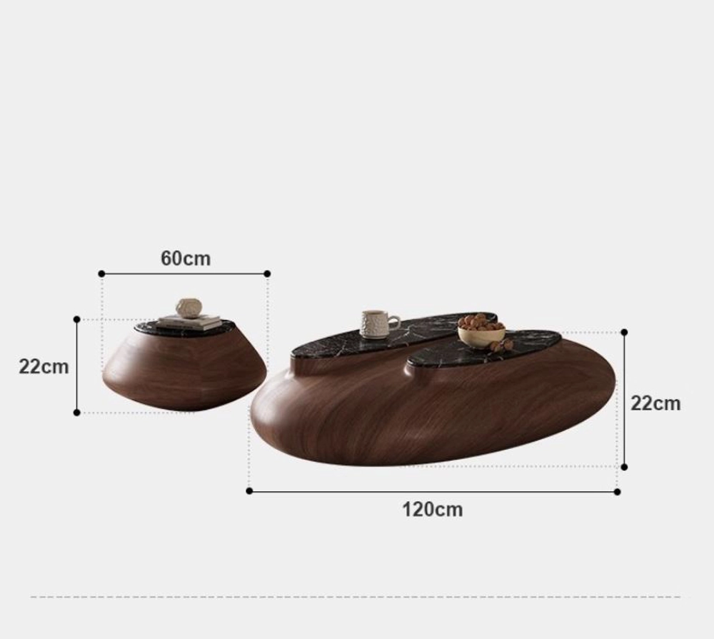 Modern Marble Coffee Table Set – Walnut Wood Center Table Dubai UAE