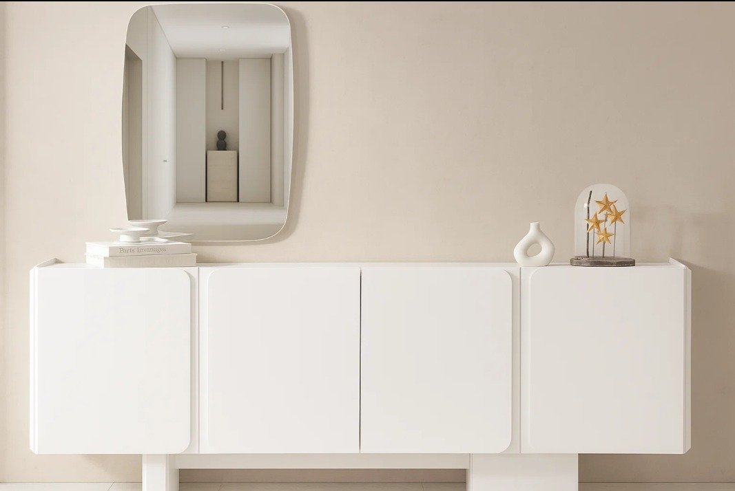 A sleek modern sideboard crafted from premium MR MDF wood finished in elegant matte white.